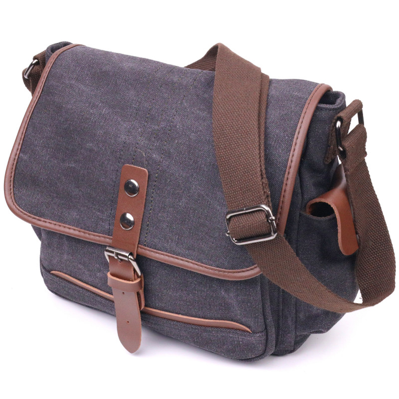 Горизонтальная мужская сумка с клапаном текстильная Vintage Черная