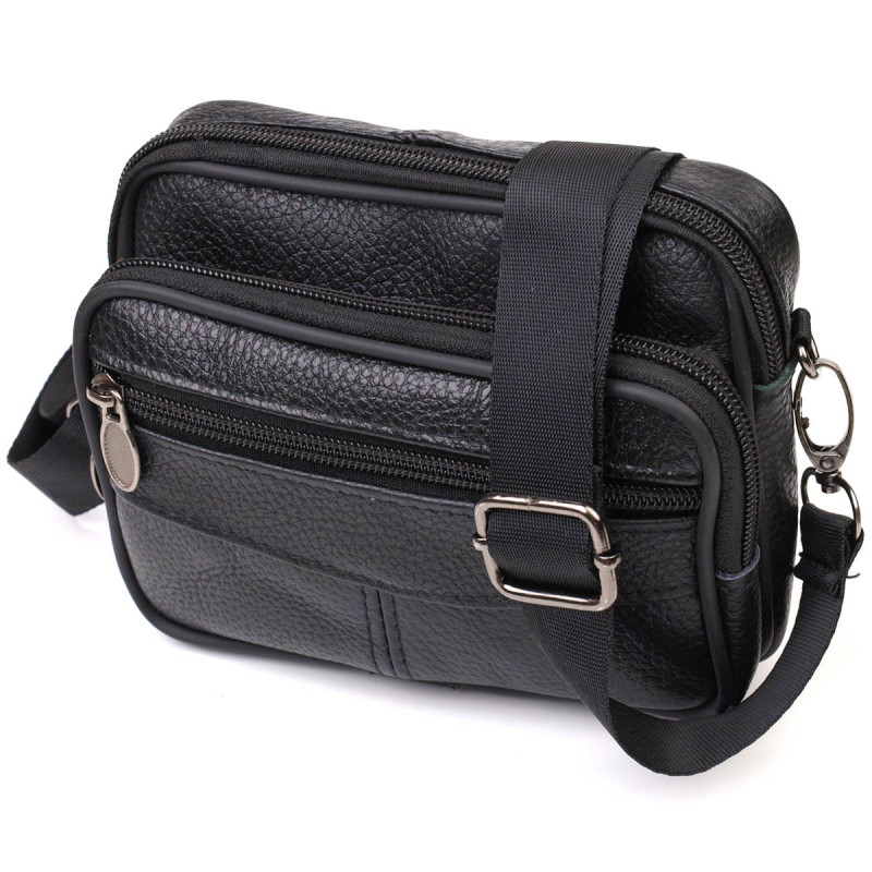 Горизонтальная мужская сумка на пояс, небольшого размера из натуральной кожи. Аксессуар отлично подойдет как для работы, так и в дорогу. Сумка состоит из основного отделения, что закрывается на молнию и двух карманов снаружи, они также закрываются молниями. Носить сумку можно на поясе, есть специальная кожаная петелька с тыльной стороны, а также в комплекте идет съемный текстильный плечевой ремешок. Модель очень практичная и универсальная. Изделие станет прекрасным подарком для любого мужчины.