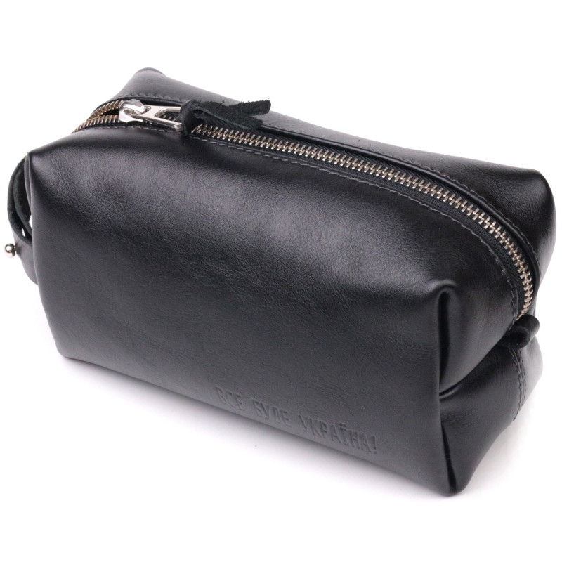 Косметичка среднего размера из гладкой кожи на молнии Украина GRANDE PELLE Черная