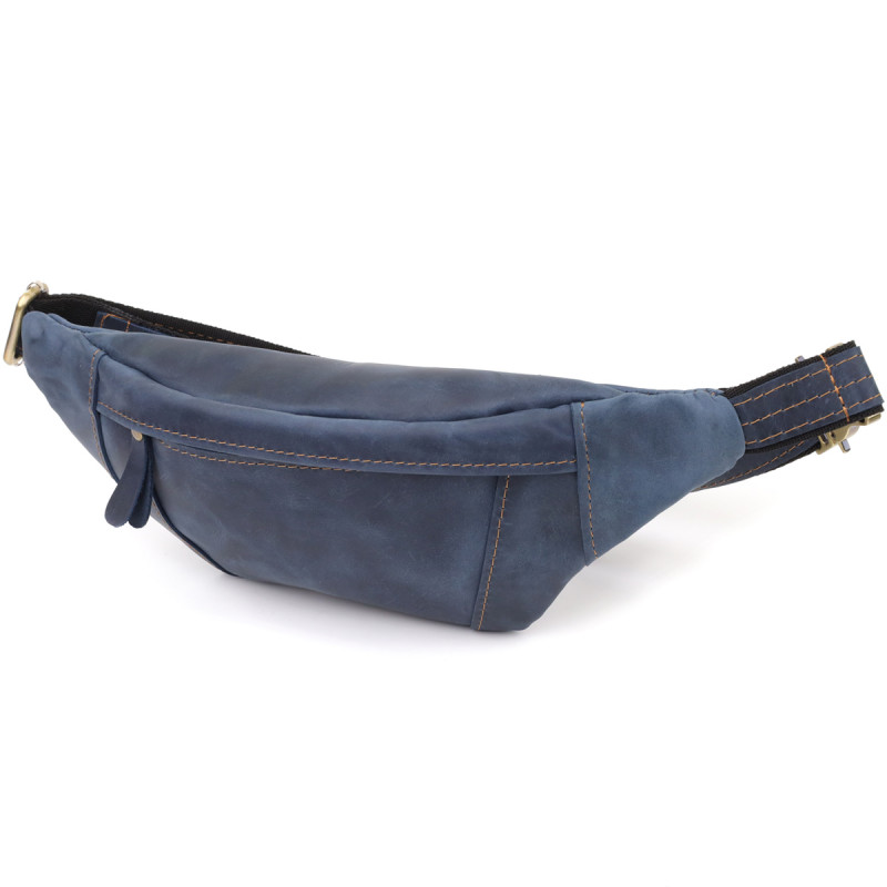 Красивая сумка-бананка для мужчин из натуральной винтажной кожи Shvigel Синий