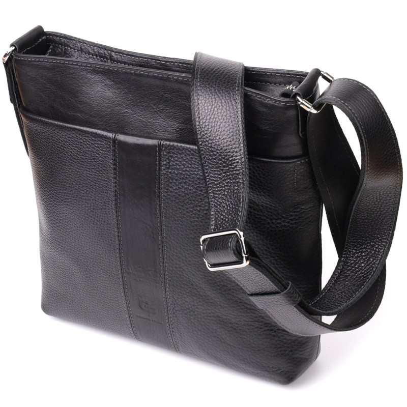 Красивая сумка через плечо для мужчин из натуральной кожи GRANDE PELLE Черная