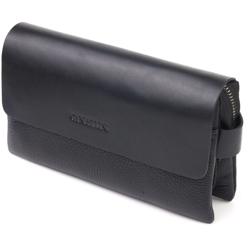 Красивый мужской клатч из натуральной комбинированной кожи CANPELLINI Черный