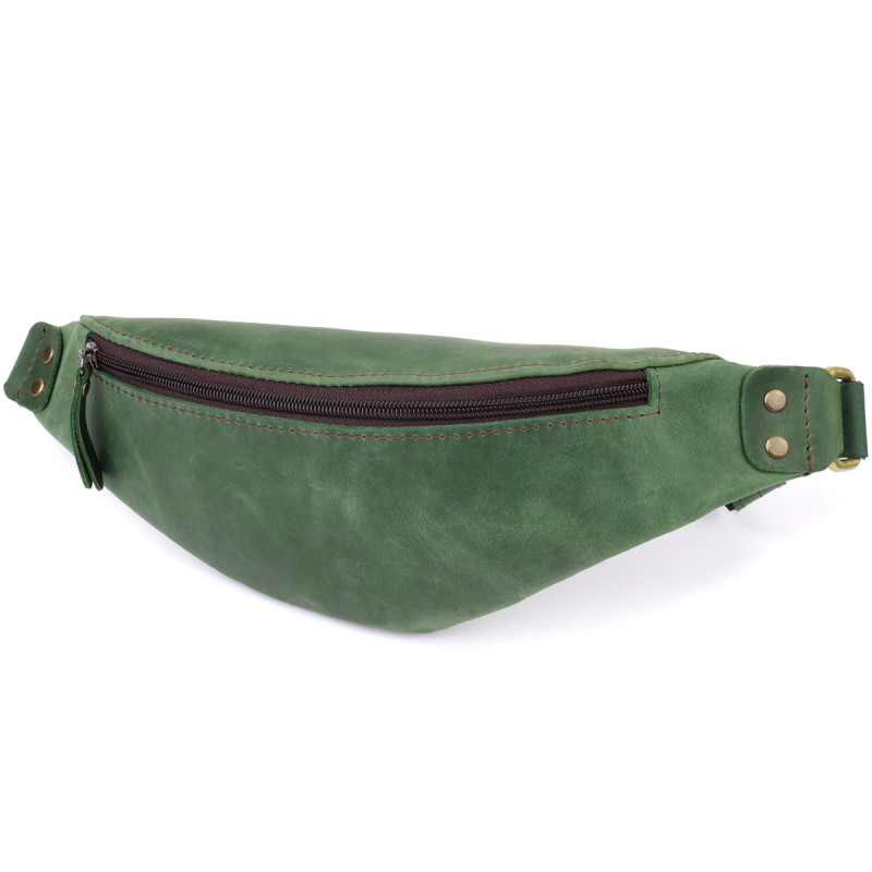 Вместительная бананка для мужчин из натуральной винтажной кожи Shvigel Зеленый