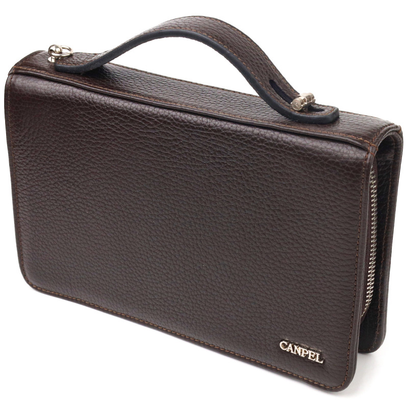Вместительная мужская барсетка на два отделения из натуральной зернистой кожи CANPELLINI Коричневая