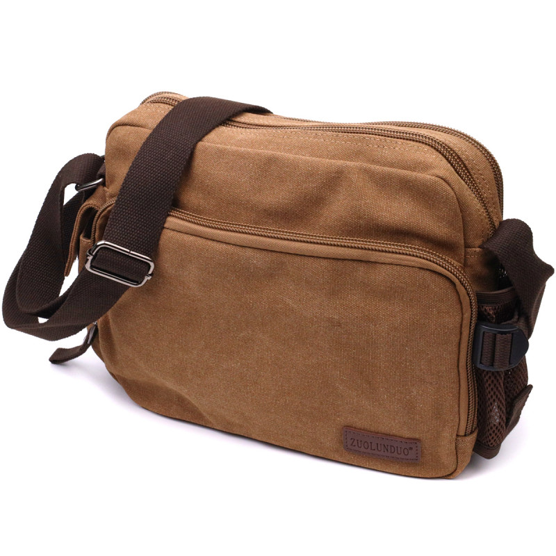Вместительная мужская сумка мессенджер из плотного текстиля Vintage Коричневый