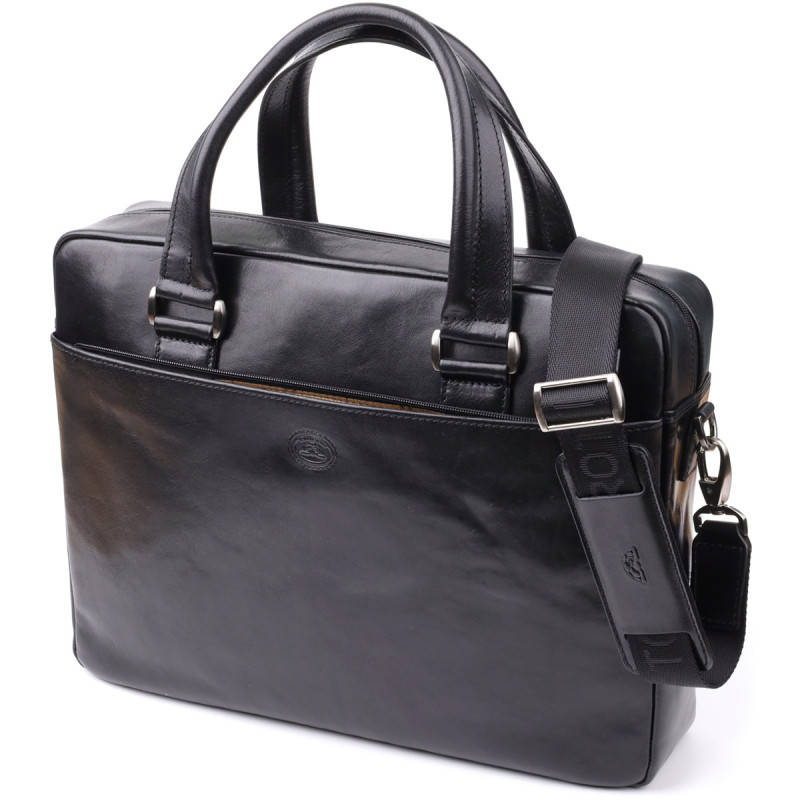 Вместительный мужской портфель с отделением для ноутбука из гладкой натуральной кожи Tony Perotti _ (- nero) Черный