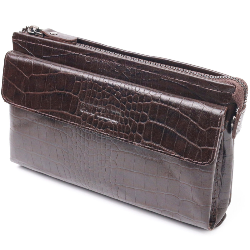 Модный клатч для мужчин из натуральной фактурной кожи CANPELLINI Коричневый