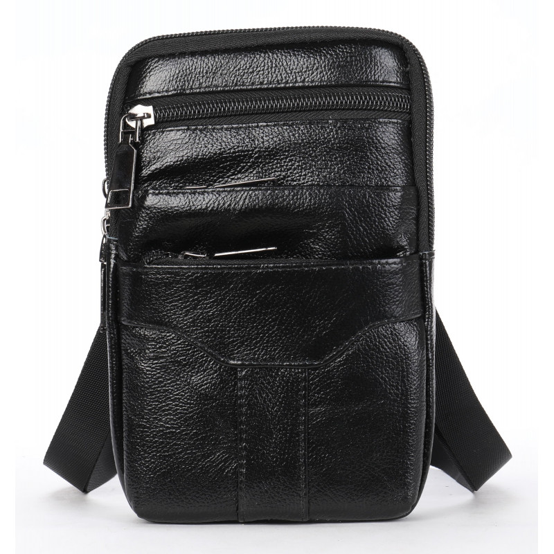 Цвет: черный; Материал: натуральная кожа высокого качества; Размер (ШхВхГ, см): 11,5х18,5х4. Страна производитель: Китай. Внутри: - два основных отделения на молнии; - два накладных кармана на молниях на лицевой стороне; - один встроенный карман на молнии лицевой стороне аксессуара; - карабин на тыльной стороне; - съемный текстильный ремешок. Компактная кожаная сумка, которая с легкостью сможет заменить вам барсетку. Особенностью сумки является то, что вы можете носить ее, повесив на свой ремень в соответствующую петельку на тыльной стороне или зацепить ее с помощью карабина. С такой сумочкой все личные вещи будут у вас под рукой и перед глазами. Сумка, которая крепится на пояс обеспечит безопасность всем вашим личным вещам и освободит руки. Модель дополнена крепкой металлической фурнитурой. Сумка будет находкой для водителей, таксистов и мужчин, которые проводят много времени за рулем. А также для практичных мужчин. Аксессуар упакован в пылезащитный чехол.