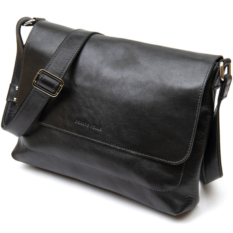 Кожаная мужская прямоугольная сумка GRANDE PELLE Черный