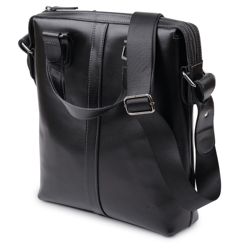 Практичная мужская сумка из высококачественной натуральной кожи с отменными эксплуатационными характеристиками и показателями. Внутри одно просторное отделение, которое разделено карманом-перегородкой. На внешней стороне сумки тоже есть два кармана на молнии, причем одно из них очень искусно спрятано. Такая сумка просто находка для современных деловых людей.
