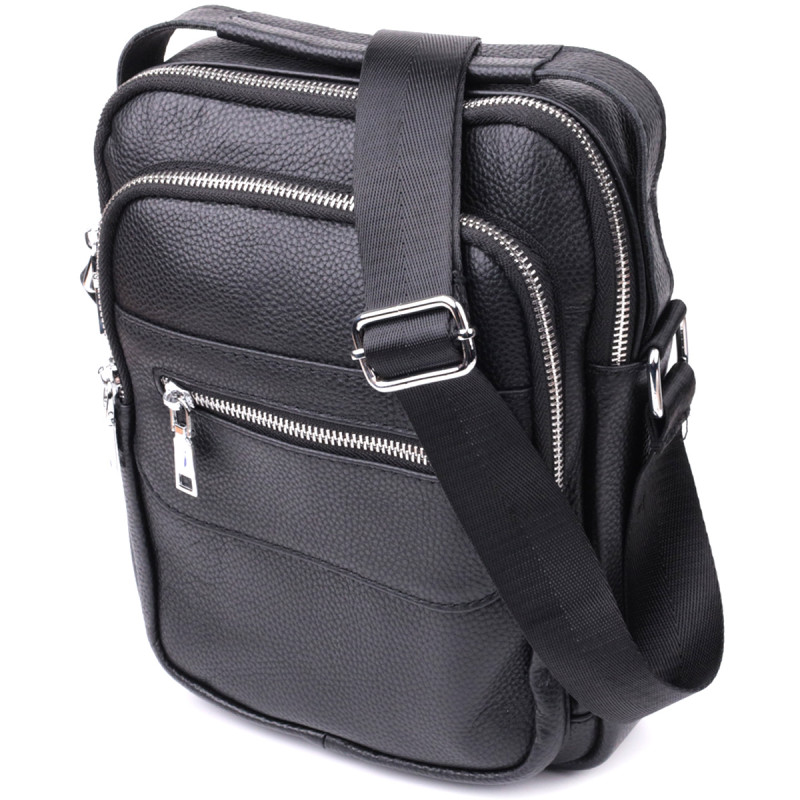 Стильная мужская сумка из натуральной кожи. Изделие выполнено из зернистой кожи черного цвета. Внутри аксессуара плотная текстильная подкладка черного цвета. Сумка будет вашим идеальным вариантом на каждый день. Модель очень удобная. Классический дизайн никогда не выйдет из моды. Такая сумка подойдет под любые вещи из вашего гардероба. Модель дополнена качественной фурнитурой в дизайн изделия.