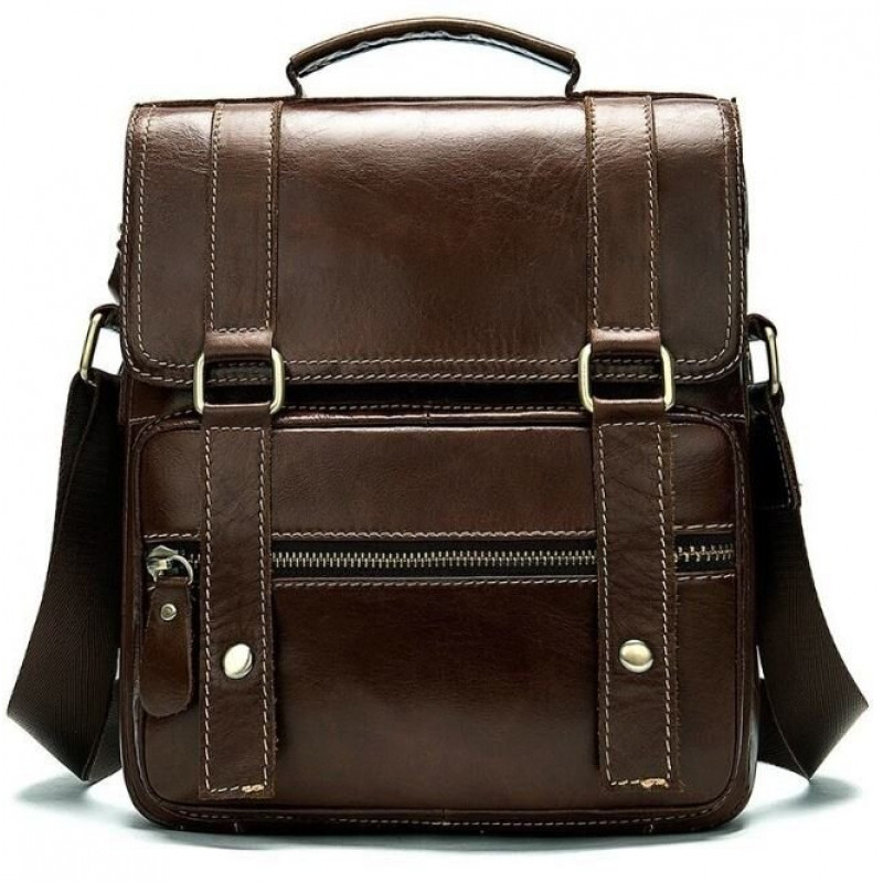 Стильная мужская сумка из натуральной кожи. По краям аксессуар прошит светлой нитью. Все швы ровные, торчащих ниток нет. Внутри аксессуара платная текстильная подкладка коричневого цвета. Аксессуар дополнен несъемным текстильным регулируемым ремешком. В сумке есть ручка для носки в руках. Очень современная и продуманна модель. Производство фабричный Китай хорошего качества. Подойдет для ежедневного использования. Хороший вариант на работу или в поездку. Будет прекрасным подарком по любому поводу.