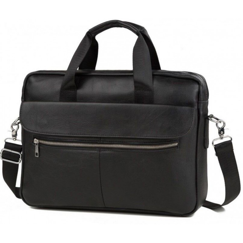 Многофункциональная мужская сумка с отделением для небольшого ноутбука 15”, а также документов формата А4. Аксессуар выполнен из натуральной зернистой кожи черного цвета. На лицевой стороне данного изделия расположены два вместительных отделения, одно под клапаном на магнитах и другое на молнии. На задней внешней стороне находится еще одно отделение на молнии. Сумку можно переносить в руке при помощи удобных кожано-текстильных ручек, а также через плечо (в комплекте съемный, регулируемый плечевой ремень, который выполнен из текстильного материала). Цвет фурнитуры: серебро.