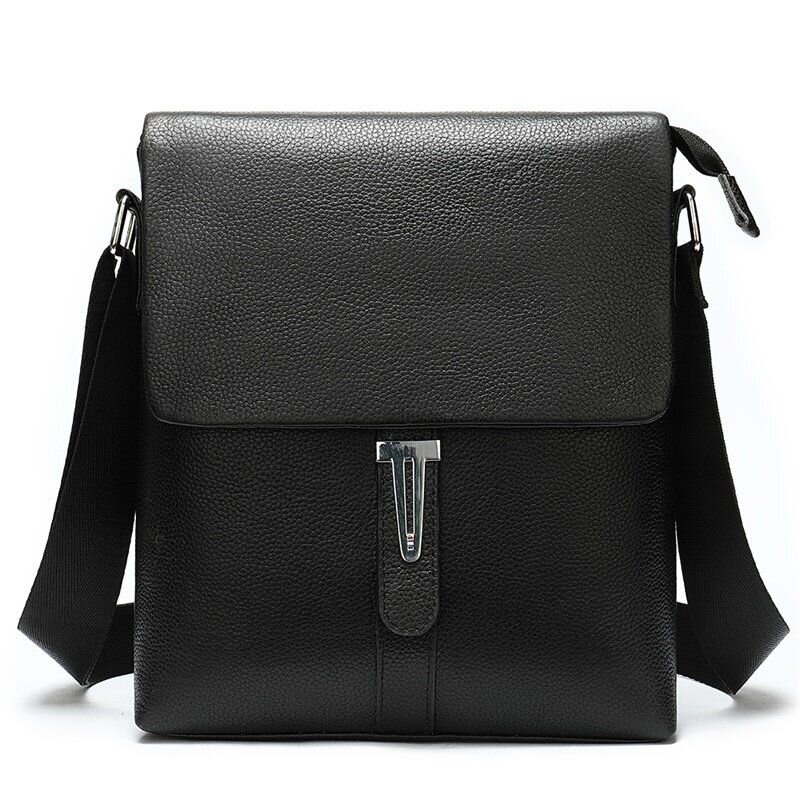 Тонкий мужской мессенджер из натуральной кожи классического черного цвета. Модель изготовлена в зернистой коже, которая отличается своей стойкостью к царапинам и потертостям. На лицевой стороне металлический логотип в виде буквы V. Внутри - коричневая текстильная подкладка. Дополнено изделие фурнитурой серебристого цвета из крепкого металла. В сумке очень удобно будет носить планшет. С ней будет также очень удобно ходить на работу или встречи. Если вы ищете небольшую и качественную сумку на каждый день рекомендуем присмотреться к данной модели. Уверены, что проносите вы ее достаточно долго.