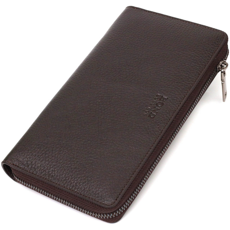 Интересный мужской клатч с одним отделением из натуральной кожи BOND Коричневый