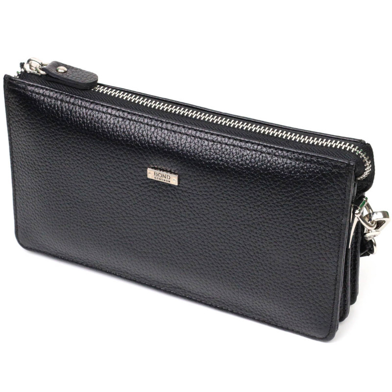 Интересный клатч на два отделения из натуральной кожи флотар BOND Черный