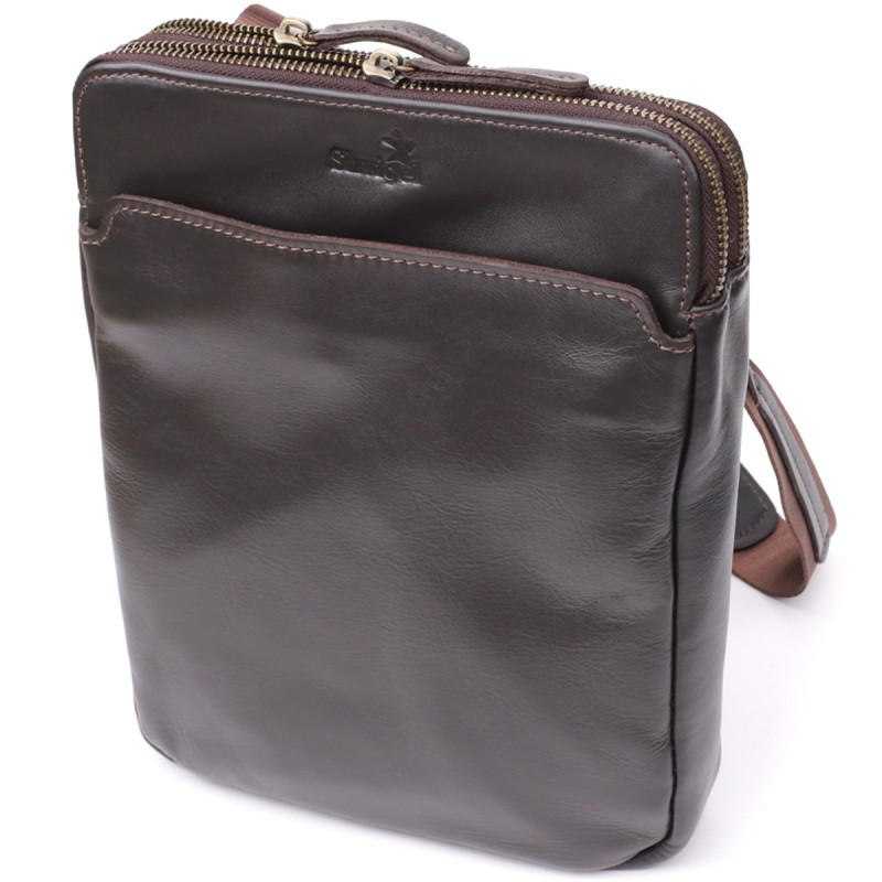 Вертикальная мужская сумка через плечо из гладкой натуральной кожи Shvigel _ Коричневый