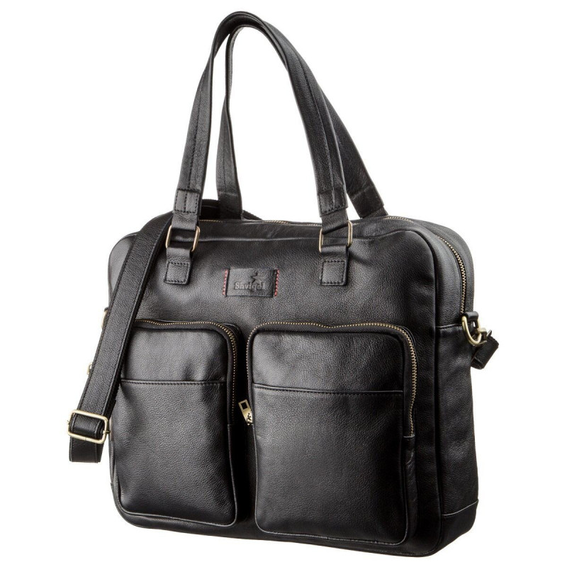 Мужская кожаная деловая сумка-портфель для ноутбука SHVIGEL Черная