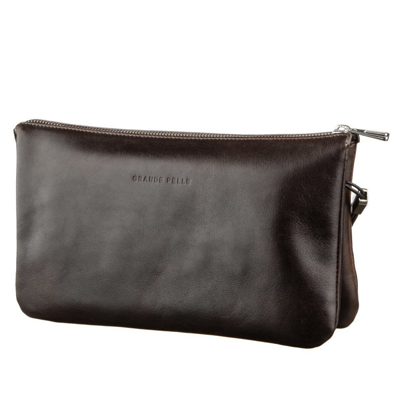 Барсетка мужская GRANDE PELLE в гладкой коже Коричневая