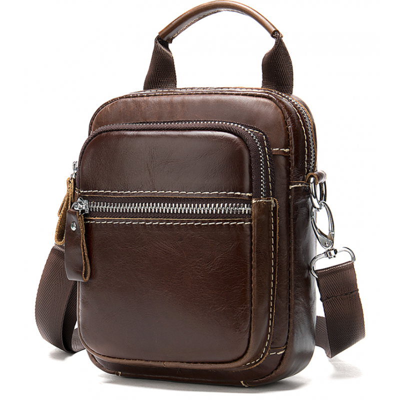 Компактная кожаная сумка, которая с легкостью сможет заменить вам барсетку. Особенностью сумки является то, что вы можете носить ее, повесив на свой ремень. С такой сумочкой все будет у вас под рукой и перед глазами. Сумка, которая крепится на пояс обеспечит безопасность всем вашим личным вещам и освободит руки. Модель дополнена крепкой металлической фурнитурой серебристого цвета. Сумка будет находкой для водителей, таксистов и мужчин, которые проводят много времени за рулем. Аксессуар упакован в пылезащитный чехол.