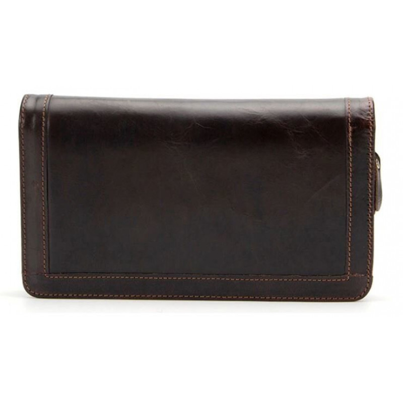 Хороший клатч изготовленный в классическом стиле. Аксессуар прошит по краям коричневой нитью. Фурнитура в аксессуаре золотистого цвета. В клатче вы можете носить свой телефон. Аксессуар приятный на ощупь. Модель не прихотлива в уходе и носится довольно долго. Хороший вариант взять с собой все необходимое без сумки. Аксессуар упакован в тканевый чехол. Может быть прекрасным подарком для близкого человека.