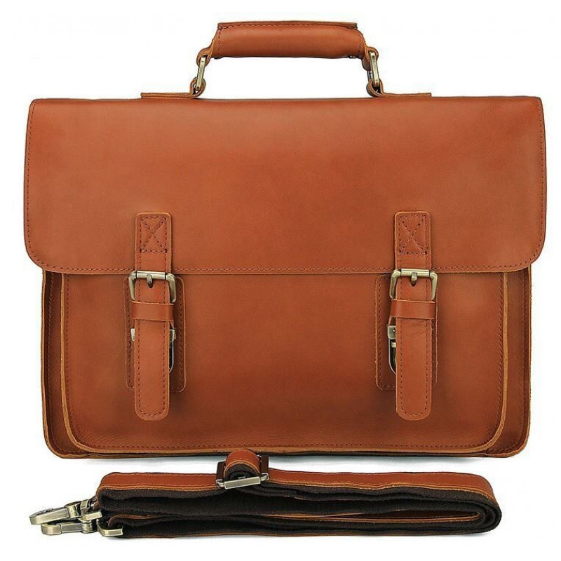 Классический стильный портфель для деловых людей. С таким портфелем вы точно будете выглядеть дорого. Аксессуар закрывается на механическую классическую застежку. Выполнен из плотной натуральной кожи и прошит коричневой строчкой по краям. В таком портфеле удобно носить ноутбук и необходимые документы и бумаги. Аксессуар дополнен плотной кожаной ручкой для носки в руке. Такой портфель станет идеальным подарком для близкого человека.