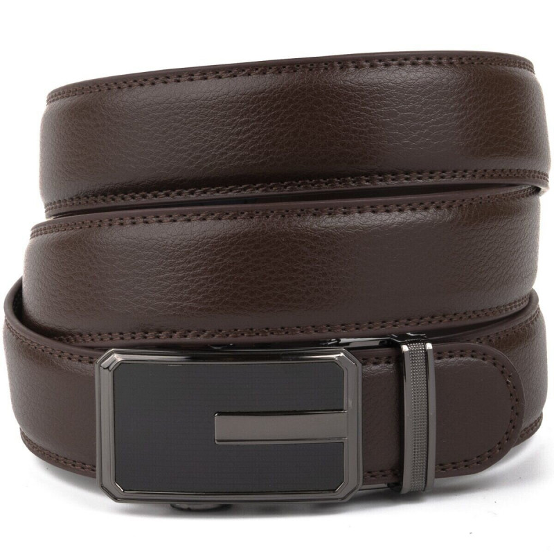 Ремень мужской тонкий c пряжкой автомат и коричневой заливкой Vintage Коричневый