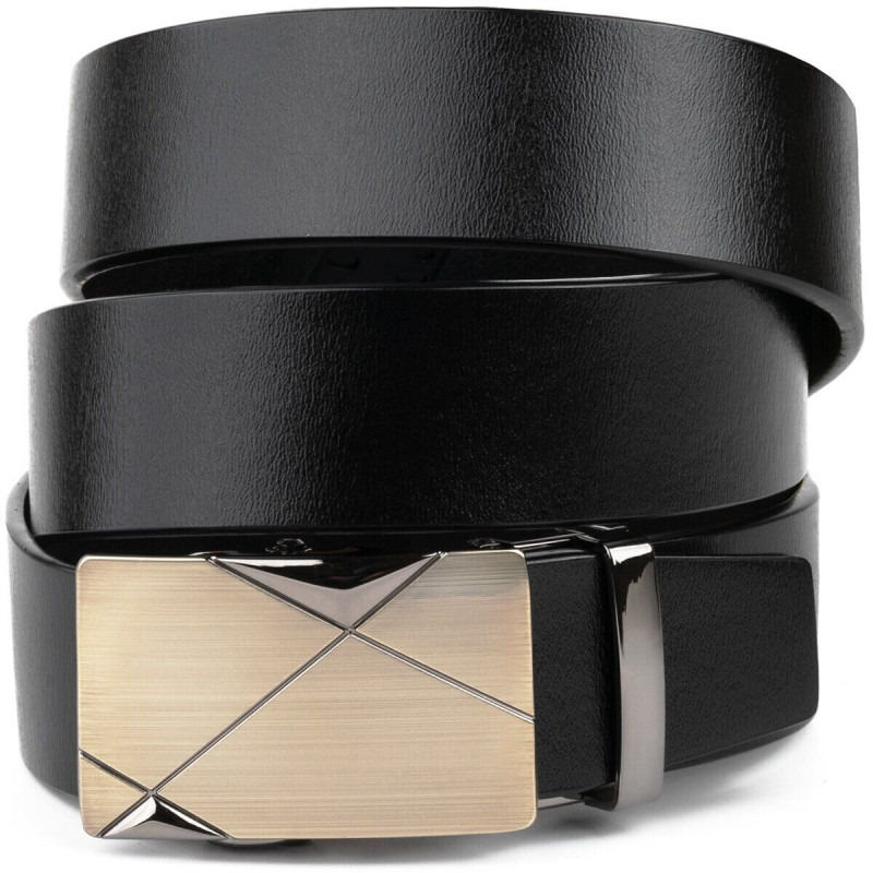 Черный мужской ремень с автоматической пряжкой. Изделие изготовлено из натуральной кожи высочайшего качества. Дополнен ремень оригинальной пряжкой с диагональным узором. Пряжка выполнена из качественного сплава. Вы можете не переживать - модель прослужит вам далеко не один год. Кожаный ремень - незаменимый аксессуар для любого мужчины. Он подойдет и под джинсы и под брюки, при этом идеально точно подчеркивая ваше отменное чувство стиля. Изделие также станет прекрасным подарком для любого мужчины. А самое главное очень нужным.