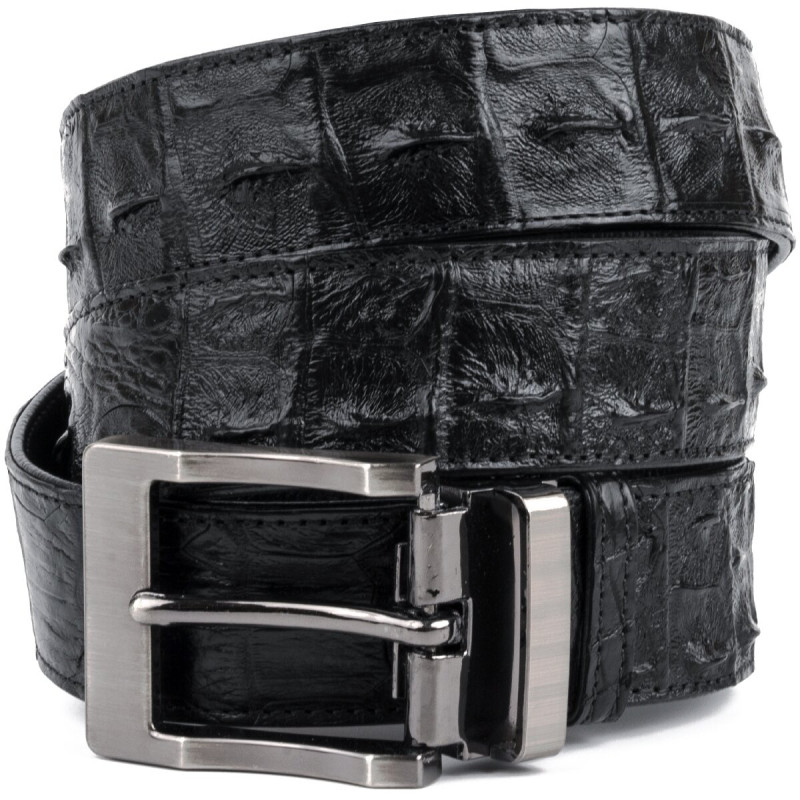 Ремень классика из натуральной кожи крокодила CROCODILE LEATHER Черный