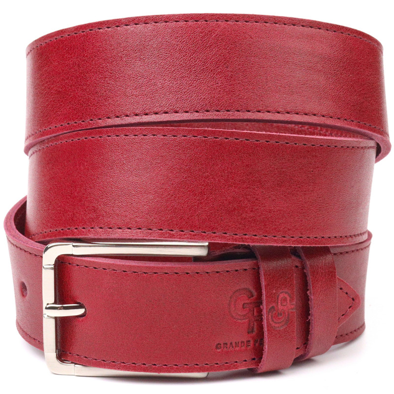 Оригинальный яркий ремень из натуральной кожи Grande Pelle Бордовый