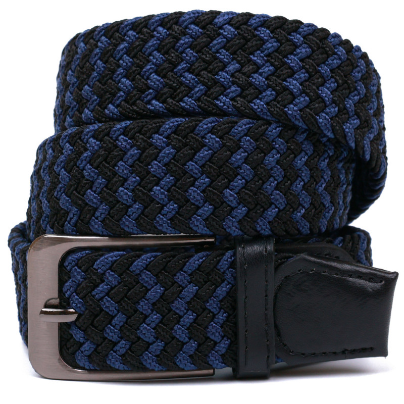 Оригинальный текстильный ремешок для женщин и мужчин, с классической пряжкой серебристого цвета. Ремень изготовлен в черном цвете, с черно-синим полотном. Особенностью данного ремешка является то, что вам не нужно делать дырки в полотне - они с легкостью делаются при помощи хлястика на пряжке. Узор текстильного полотна раздвигается и хлястик проходит насквозь. Таким образом у вас нет необходимости укорачивать полотно ремня. Текстильный ремешок станет лучшей альтернативой кожаному ремню и при этом значительно сэкономит ваши средства. На нашем сайте вы сможете подобрать подарочную коробку и сделать ваш подарок еще более неожиданным.