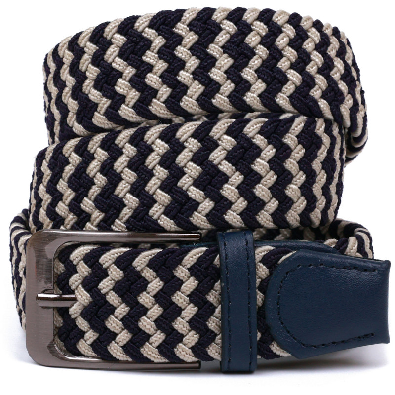 Текстильный ремешок для женщин и мужчин, с классической пряжкой серебристого цвета. Ремень изготовлен в синем цвете, с бело-синим полотном. Особенностью данного ремешка является то, что вам не нужно делать дырки в полотне - они с легкостью делаются при помощи хлястика на пряжке. Узор текстильного полотна раздвигается и хлястик проходит насквозь. Таким образом у вас нет необходимости укорачивать полотно ремня. Текстильный ремешок станет лучшей альтернативой кожаному ремню и при этом значительно сэкономит ваши средства. На нашем сайте вы сможете подобрать подарочную коробку и сделать ваш подарок еще более неожиданным.