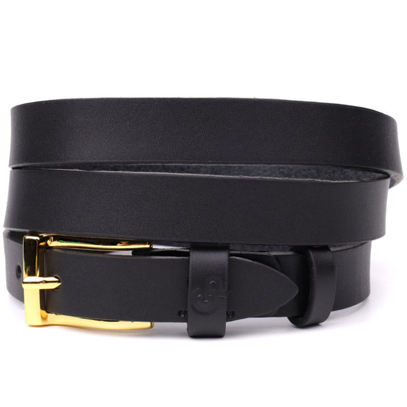 Тонкий кожаный ремень для женщин GRANDE PELLE Черный