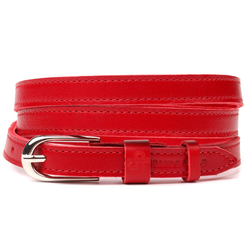 Узкий женский ремень из натуральной кожи Grande Pelle Красный