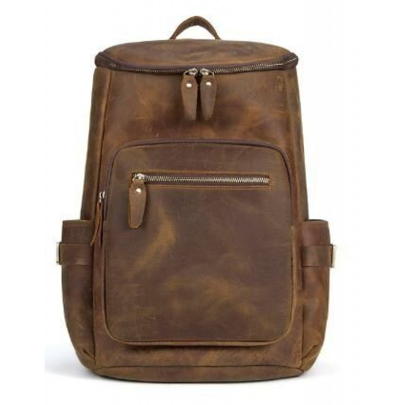 Объемный дорожный рюкзак из натуральной кожи Crazy horse. Аксессуар прошит по краям рыжей строчкой и дополнен золотистой фурнитурой. Рюкзак имеет уплотненное дно и крепкую текстильную подкладку. Сзади аксессуара крепкие кожаные регулируемые лямки на плечи. Производство фабричный Китай высокого качества. Рюкзак будет отличным помощником вам в дорогу и вы легко поместите в него все свои необходимые вещи. Со временем на аксессуаре могут появиться потертости и царапины, которые придают ему особого шарма. Кожаный рюкзак проносится намного дольше, чем текстильный или из заменителя. Рюкзак очень вместительный и функциональный. Аксессуар подойдет как для мужчины так и для женщины.