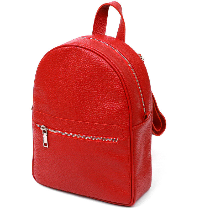 Превосходный женский рюкзак небольшого размера из натуральной высококлассной кожи с улучшенными показателями прочности и стойкости к износу. Внутреннее наполнение представлено в виде просторного основного отделения, двух карманов внутри и одного снаружи, что очень удобно и практично. Цвет изделия – насыщенный красный, фактура – зернистая и очень приятная на ощупь.