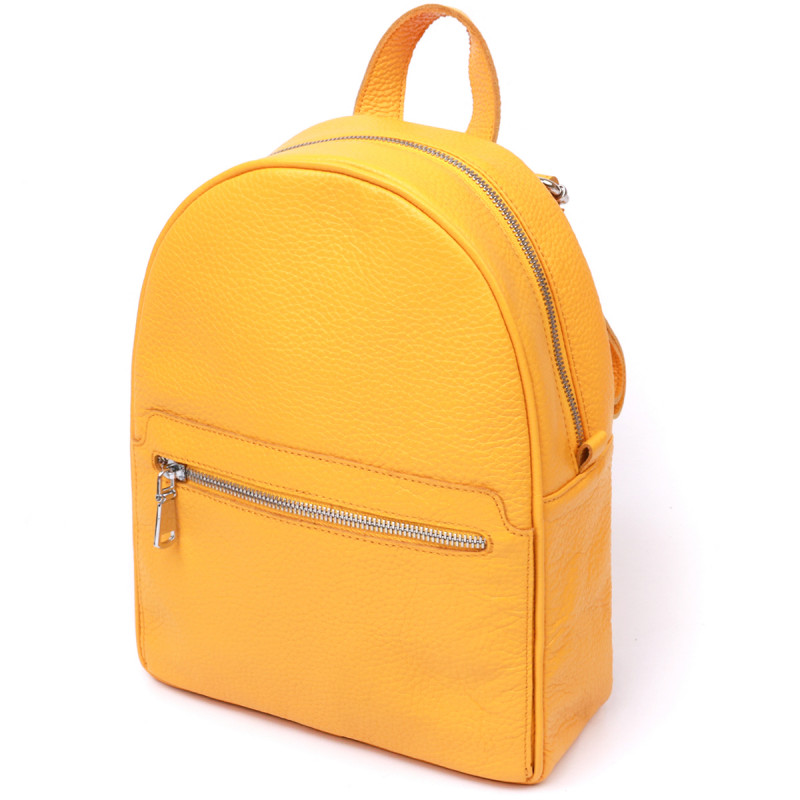 Практичный женский рюкзак небольшого размера в строгом привлекательном дизайне. Выполнено изделие из натуральной кожи высокого класса и повышенной стойкости к износу. Цвет данной модели - сочный желтый, что смотрится очень красиво и по-летнему ярко. Внутреннее наполнение представлено в виде вместительного основного отделения и нескольких карманов.