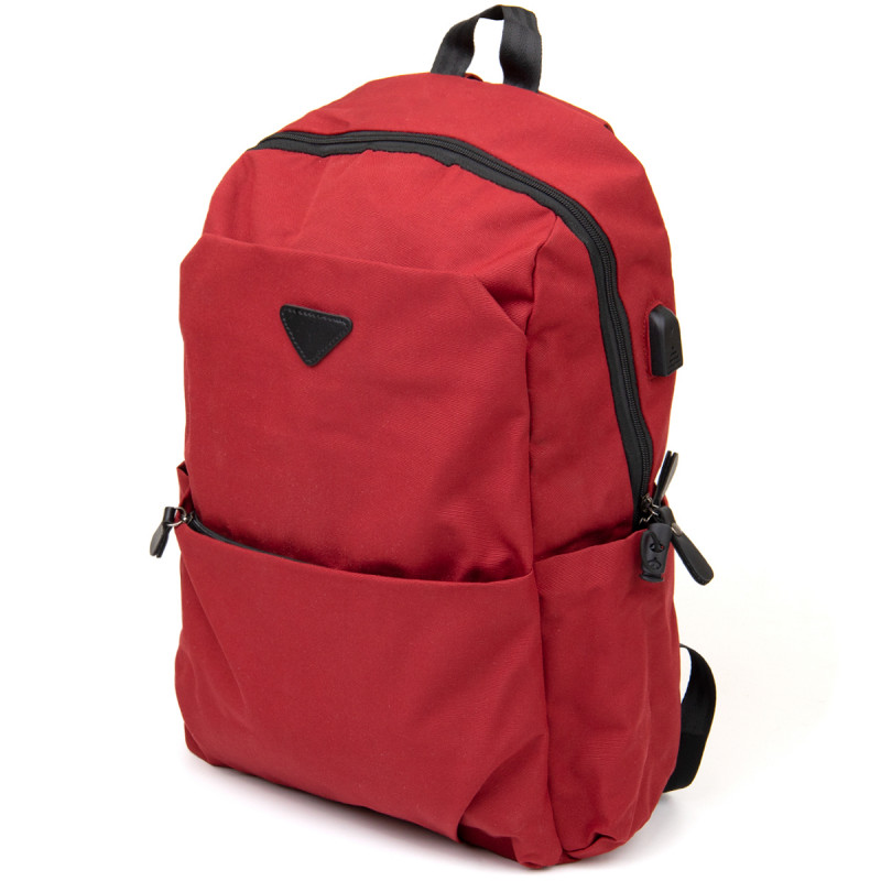 Текстильный функциональный рюкзак очень легкий и практичный в малиновом цвете. Изделие имеет оптимальный размер для вашего удобства. Функционал рюкзака продуман под современного клиента, который не представляет свою жизнь без гаджетов. Разъем и шнур в комплекте для вашего удобства. На тыльной стороне петелька, которая позволит вам зафиксировать каремат. С таким рюкзаком удобно отправиться в путешествие или на отдых, или использовать его в качестве рюкзака под ноутбук. Изделие - отличный вариант для занятий спортом. Закрывается рюкзак на молнию и имеет одно основное отделение. Рюкзак имеет уплотненную спинку, которая фиксирует вашу спину и уменьшает нагрузку. Тканевый рюкзак станет хорошим подарком для ваших близких и самое главное очень полезным и необходимым.
