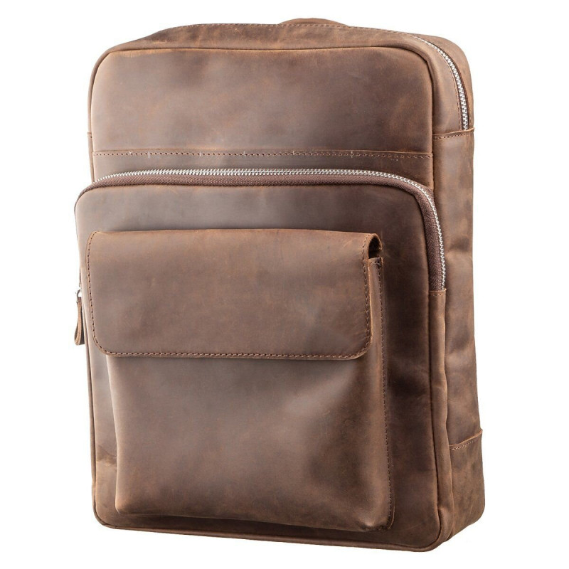 Рюкзак из натуральной кожи Crazy horse. Подойдет как для мужчин, так и для женщин. Внутри рюкзака качественная текстильная подкладка коричневого цвета. Кожаный рюкзак является отличным решением для тех кто не хочет носить сумки. С рюкзаком очень удобно. Рюкзак из натуральной кожи вы проносите далеко не один год. Модель имеет оригинальный классический дизайн и дополнена серебристой фурнитурой.
