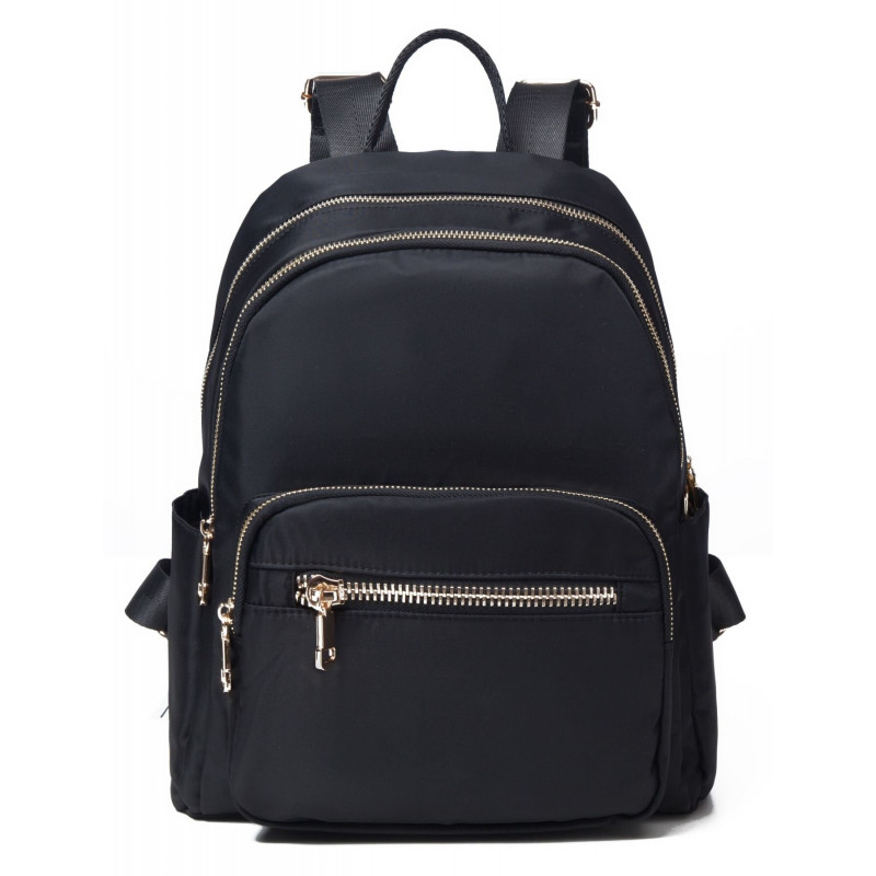 Современный женский рюкзак компактного размера на каждый день. Аксессуар имеет оригинальный классический дизайн, который не привязывает вас к определенному стилю. Модель дополнена блестящей золотистой фурнитурой и очень приятная на ощупь. В аксессуар легко поместится косметичка, деньги, ежедневник или любимая книга, а также другие необходимые женские мелочи. Очень хорошая модель на каждый день. Рюкзак выполнен из плотного нейлона и прослужит вам сравнительно долго. Несмотря на свой небольшой размер аксессуар очень вместительный и удобный. Рюкзак будет идеальным подарком для любой девушки.