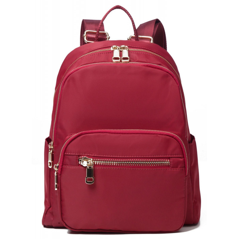 Современный женский рюкзак компактного размера на каждый день. Аксессуар имеет оригинальный классический дизайн, который не привязывает вас к определенному стилю. Модель дополнена блестящей золотистой фурнитурой и очень приятная на ощупь. В аксессуар легко поместится косметичка, деньги, ежедневник или любимая книга, а также другие необходимые женские мелочи. Очень хорошая модель на каждый день. Рюкзак выполнен из плотного нейлона и прослужит вам сравнительно долго. Несмотря на свой небольшой размер аксессуар очень вместительный и удобный. Рюкзак будет идеальным подарком для любой девушки.