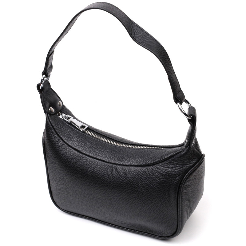 Аккуратная кожаная женская сумка полукруглого формата с одной ручкой Vintage Черная