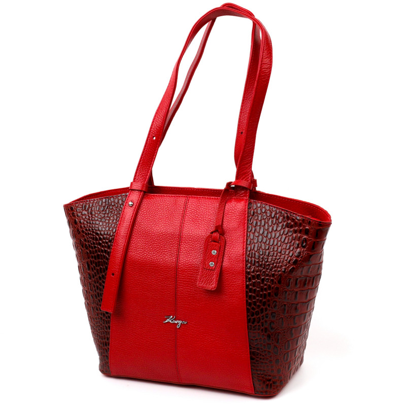 Женская сумка среднего размера из натуральной кожи с тиснением под крокодила и вставкой с зернистой кожи, в красном цвете. Фурнитура серебряного цвета. Сумку удобно носить в руке, на плече или через плечо. Сумка упакована в фирменный текстильный чехол Karya. Сумка из натуральной кожи всегда будет отличным подарком любой женщине.