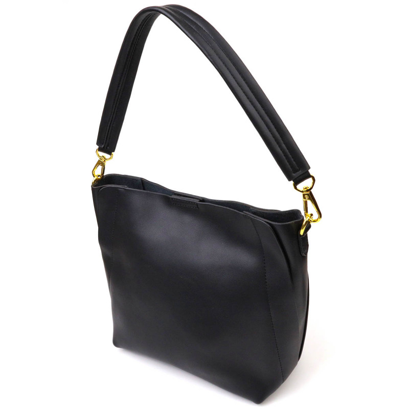Деловая женская сумка из натуральной кожи Vintage Черная