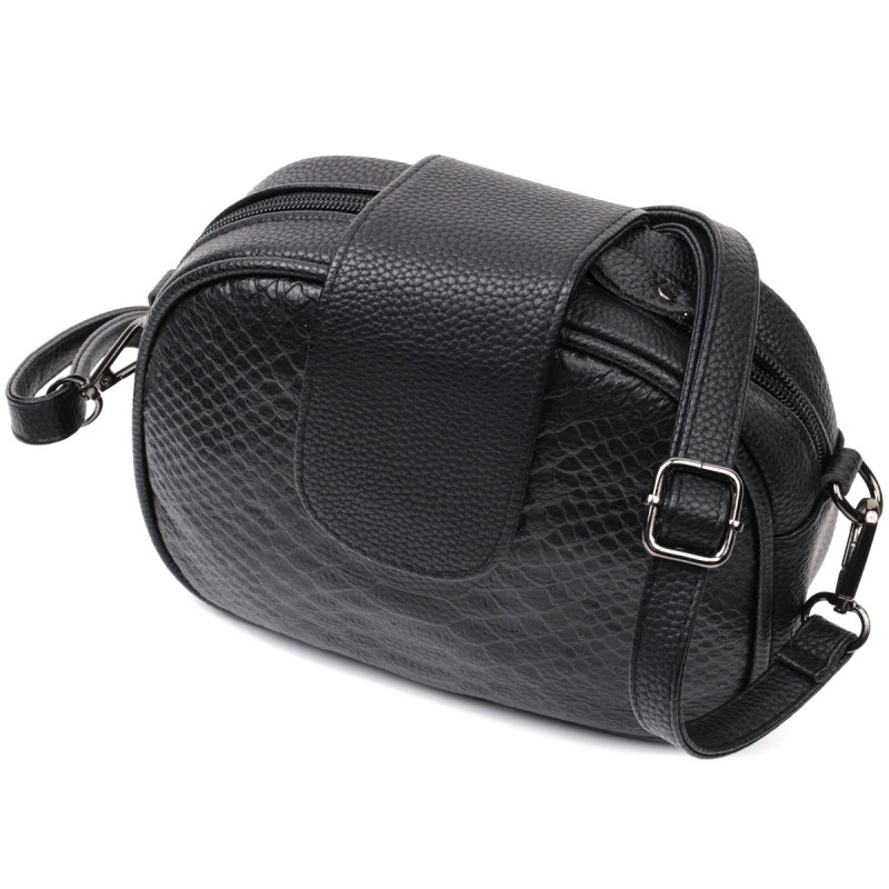 Фактурная сумка для женщин из натуральной кожи с тиснением под змею Vintage Черная