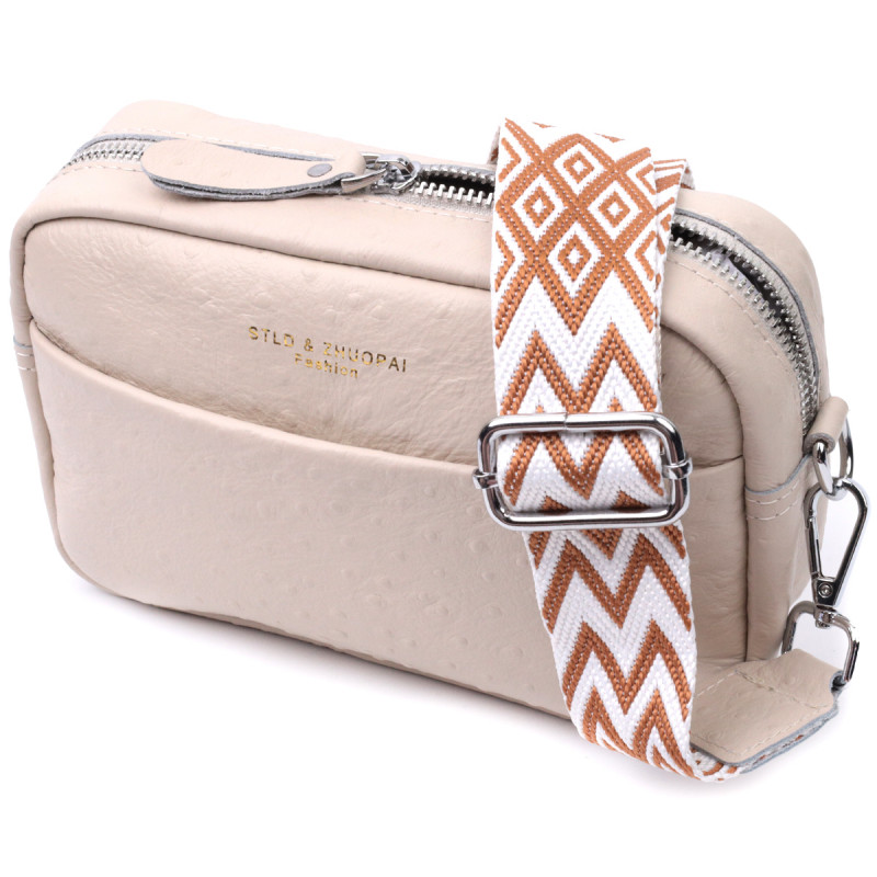 Женская сумка на каждый день из натуральной кожи. Аксессуар состоит из основного отделения, что закрывается на молнию, кармана на молнии и кармана открытого типа внутри и двух карманов снаружи, на лицевой и тыльной стороне. Носить сумку можно на плече и через плечо для этого имеется съемный текстильный ремень.