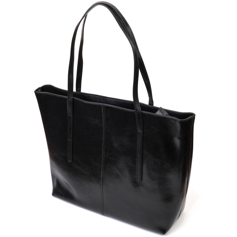 Функциональная сумка шоппер из натуральной кожи Vintage Черная