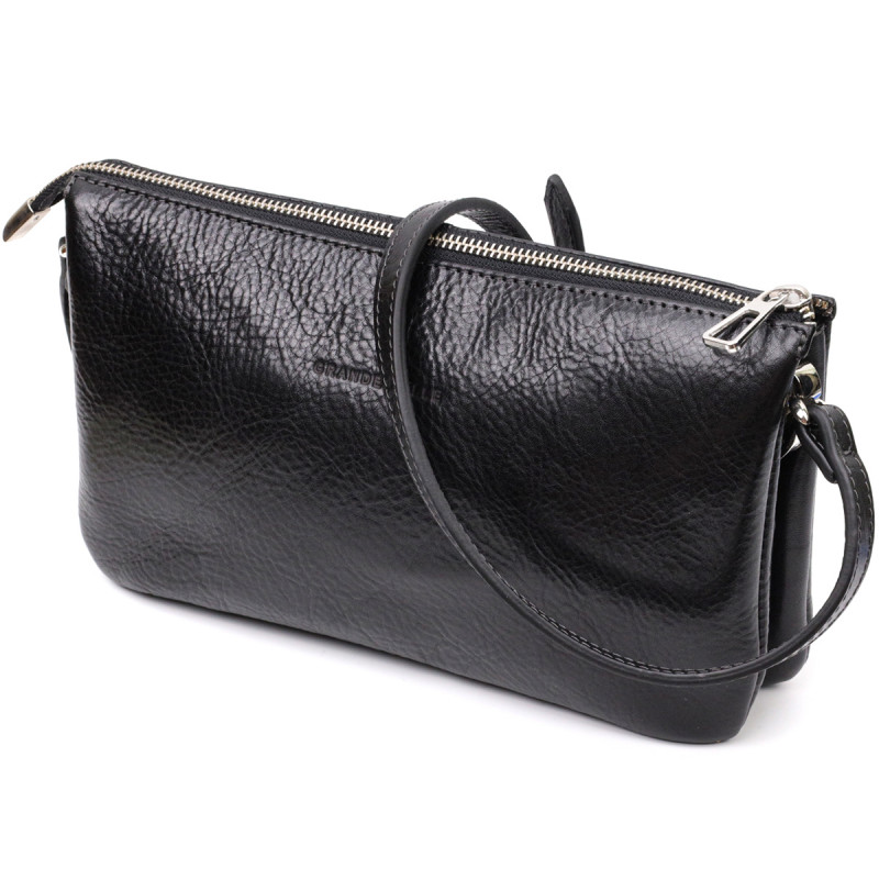 Качественный женский клатч из натуральной кожи GRANDE PELLE Черный