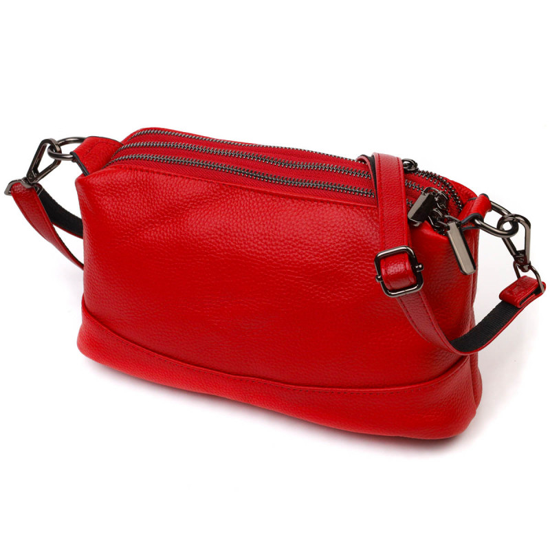 Яркая сумка на три отделения из натуральной кожи Vintage Красная