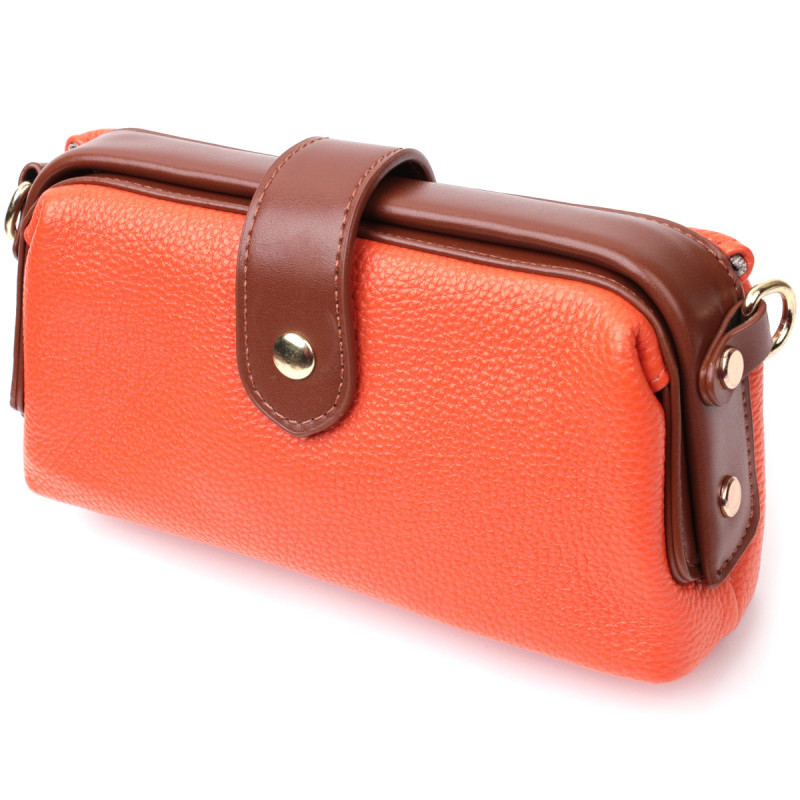 Яркий клатч с интересной защелкой из натуральной кожи Vintage Оранжевый